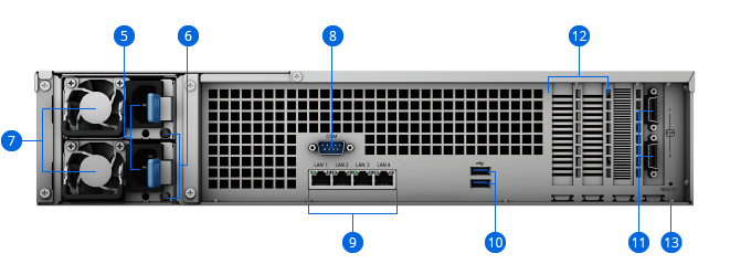RS3621RPxs RackStation® RS3621RPxs RackStation®RS3621RPxs 專為企業級需求打造的高效資料管理解決方案。 守護您的企業資產 Synology RS3621RPxs 是一台 12 顆硬碟槽的 NAS 伺服器。搭載 6 核心處理器能處理計算密集型任務,而其備援電源、ECC 記憶體、Btrfs 檔案系統能保護關鍵任務資料的安全。提供高達 189,098 4K 隨機讀取 IOPS 與每秒 4,718 MB 的循序讀取傳輸效能,適合小型企業部署使用。 處理器Intel® Xeon® D-1531 6 核心 2.2 GHz 處理器 效能每秒 4,718 MB 循序讀取效能、189,098 4K 隨機讀取 IOPS1 配置彈性內建雙 PCIe 擴充插槽,讓您按需安裝 10GbE 網路介面卡或 M.2 NVMe 快取轉接卡 擴充性搭配 RX1217(RP) 可擴充至 36 顆硬碟槽 穩定性為首要考量 穩定、可靠和服務永續為 RS3621RPxs 的設計核心。 備援電力 雙電源供應器能確保當其中一台故障或電源線意外被拔除時仍可持續供應電力,而熱插拔風扇則讓您無需關閉系統即可進行更換。 服務不中斷 Synology High Availability (SHA) 將兩台相同的 Synology NAS 伺服器組成一個主/被動叢集,並能在數分鐘內完成故障移轉。 新一代檔案系統 Btrfs 檔案系統帶來最先進的儲存技術及最佳化的快照功能,能預防資料毀損並降低維護成本支出。 免授權備份解決方案 防患於未然 保護您的 IT 架構 Hyper Backup 專為企業重要營運資料而生的全方位備份保護解決方案,可將您的 Synology NAS 資料輕鬆備份至多元異地目的端,例如:另一台 Synology NAS、rsync 伺服器,亦支援主流公有雲端空間,例如:Google Drive、Dropbox、S3 相容目的地,以及 Synology 專為企業應用設計的經濟首選雲端空間 Synology C2。借助其強大的去重複化技術、完整性檢查與增量傳輸技術,有效減少備份頻寬與儲存使用量。 Snapshot Replication 輕鬆、彈性配置共用資料夾與 LUN 的備份任務排程,完美實現最低至 5 分鐘的 RPO 與秒級還原。更可運用備份複寫及故障轉移功能,將關鍵服務或資料移轉至其他 Synology NAS 儲存伺服器,最小化服務中斷時間,鞏固企業營運產能。 Active Backup 套件組合 管理員能輕鬆備份 Windows、Linux 工作站與伺服器、檔案伺服器、VMware 與 Hyper-V 虛擬機器、Mircosoft 365 與 Google Workspace 帳號至 Synology NAS 上,全面保護 IT 架構。此外,Active Backup 採用全域去重複化與增量備份,大幅提升備份效率並精省所需儲存空間,完善您的備份策略同時減輕實作成本負擔。 虛擬化儲存 Synology iSCSI 儲存方案完整支援主流虛擬化運用環境,透過直覺易用的管理介面,幫您有效提升工作效率。VMware vSphere 6 及 VAAI 的整合能卸載儲存作業;Windows 卸載資料傳輸 (Offloaded Data Transfer,ODX) 大幅改善資料傳輸;OpenStack Cinder 則可將您的 Synology NAS 設定為區塊分段式的儲存組件。此外,Synology Storage Console 更可為 VMware 與 Windows 環境提供更簡易的儲存配置與管理選項。 內建強大影像監控功能 Synology Surveillance Station 能讓 RS3621xs+ 成為一個多功能的 Network Video Recorder 解決方案。支援多達 90 台網路攝影機5與如動作偵測、禁止逗留區、異物與異常偵測等影像分析技術,符合多數企業監控使用情境需求。 安全、隱私 AES-256 加密技術能保護儲存在本地端的影像檔。 隨時隨地存取 您可透過網頁瀏覽器、桌面用戶端或行動應用程式 DS cam 隨時隨地存取錄影檔或即時影像。 即時警示 當事件或預設情境被觸發時,您可透過信件、簡訊或推播通知獲得警示通知。 搭載 Synology DiskStation Manager RS3621RPxs 搭載 Synology DiskStation Manager (DSM) 網路介面作業系統,提供企業所需的應用與服務。 Central Management System透過集中化介面同時管理複數 Synology NAS,提升管理效率及彈性。 Synology Drive檔案管理及同步的全方位解決方案。 協同合作套件組合Synology Office、Calendar、Chat 等工具可確保安全、高效率的私人溝通服務,並提供使用者友善的內容組織。 Virtual Machine Manager在完全隔離的沙盒環境下運行多種作業系統。無縫複製、還原和移轉虛擬機器。 安全性內建的全方位安全性工具不斷更新,保護您的裝置遠離日益變化的威脅。 完美整合公有雲輕鬆在您的公有雲帳號和 Synology NAS 間雙向備份、同步資料。 五年產品保固Synology 致力於產品的創新及對品質的堅持。RS3621RPxs 提供使用者五年的產品保固並透過專業的技術支援及硬體換修服務以提升您的投資報酬率。 7x24 硬體到場服務透過加選 5x8 NBD 或者 7x24x4 的授權,即可享有故障發生時的遠端電話故障排除服務,以及人力與料件的到場維修,大幅提升Synology主機的服務可用性。 RackStation® RS3621RPxs 1 電源按鈕及指示燈 2 警報停止按鈕 3 硬碟托盤 4 硬碟狀態指示燈 5 電源埠 6 PSU 指示燈 & 關閉警示按鈕 7 PSU 風扇 8 Console 埠 9 1GbE RJ-45 網路埠 10 USB 3.2 埠 11 擴充埠 12 PCIe 擴充插槽 13 Reset 按鈕